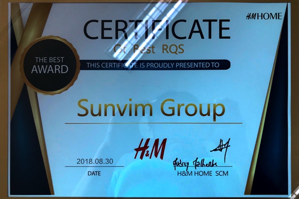 孚日获H&M全球供应闪“最佳质量奖”