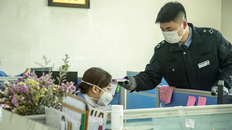 安保人员查验员工证件。