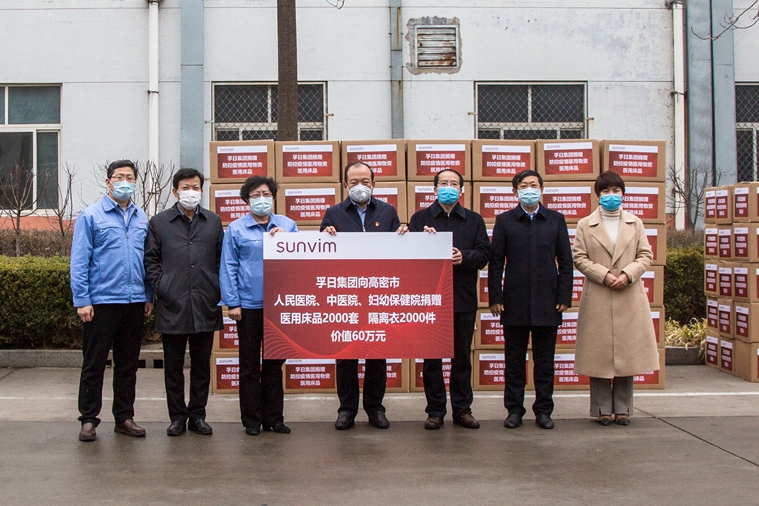 此外,为了援驰抗疫,129日,孚日集团向高密市慈善总会捐款100万元,专项用于疫情防控。复工复产后,孚日集团在第一时间组建起医用产品生产专线,加班加点赶制医用床品、隔离衣等防疫物资。214日,孚日集团通过高密市慈善总会向高密市人民医院、中医院、妇幼保健院定向捐赠被套、床单、枕套等医用床品2000套和隔离衣2000件,并安排专车送往各医院指定地点。该批医用物资总价值为60万元。