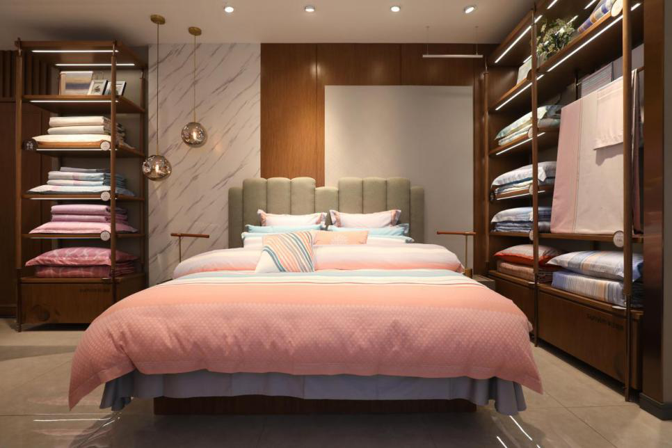 与此同时,在全球新美学生活理念的指引下,孚日家纺还打造了极致专业的服务体系,每家店都配置了专业美学顾问,向顾客提供婚房布置、私人订制、上门试铺、家居洗护、除螨杀菌等增值服务,与消费者形成更具互动性和依赖性的关系。