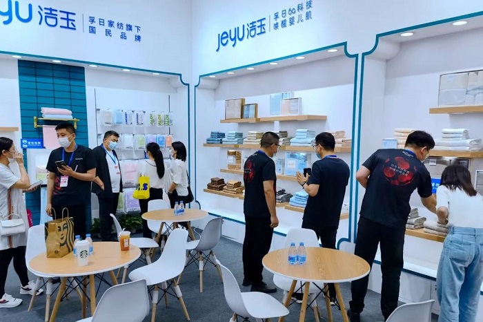 仲夏之月,万物方盛。2022年6月15日至18日,第30届中国(深圳)国际礼品及家居用品展览会盛大举办。作为深圳礼品展的长期参展商,孚日集团携旗下品牌“sunvim孚日家纺”和“jeyu洁玉毛巾” 亮相8号馆8F01-10展位,以“只此青绿 一眼万年”的主题形象,倡导健康、安全、舒适的“孚日6a科技”家居理念。孚日集团董事、副总经理孙浩博莅临展会现场指导。